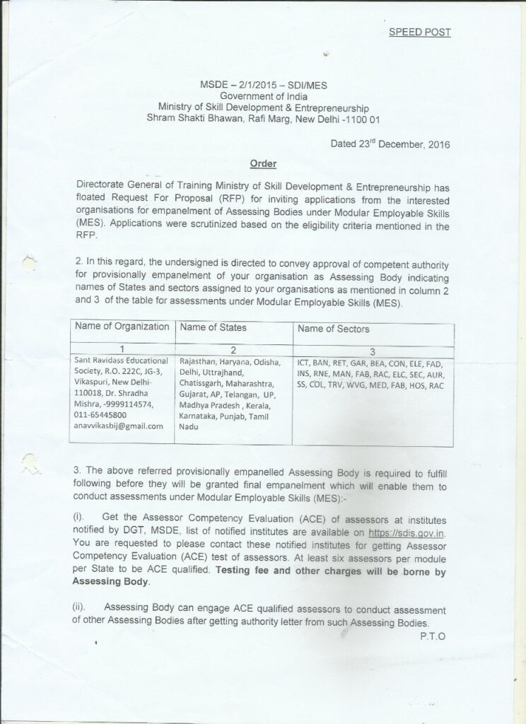 Affiliation letter